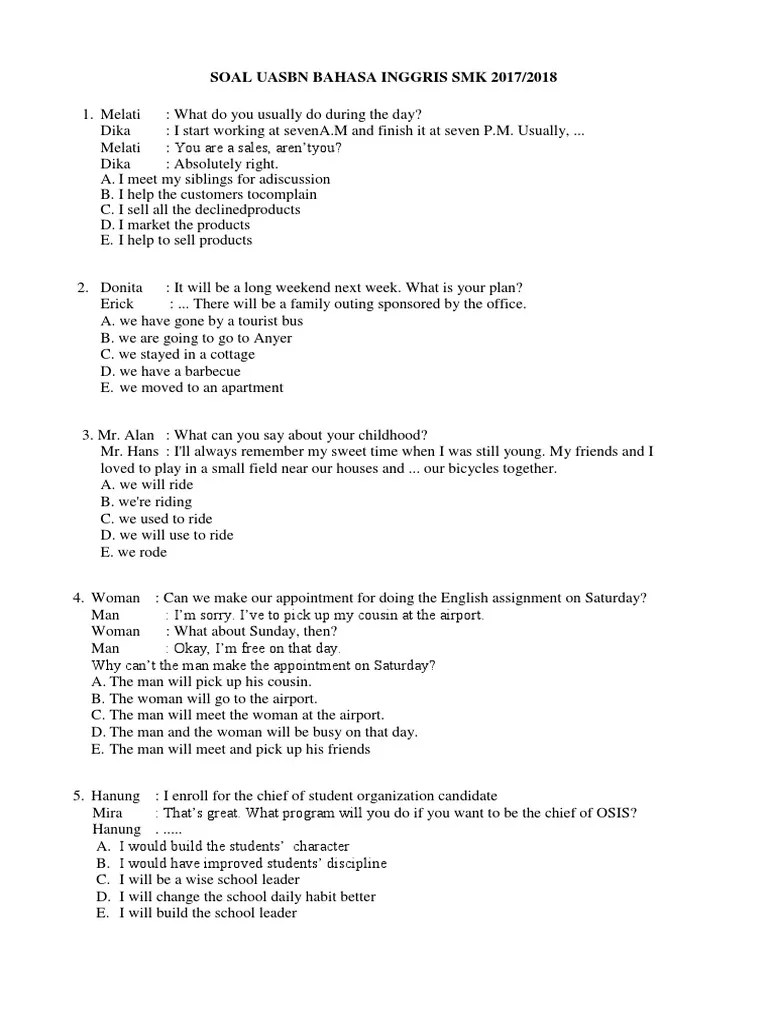 Soal Usbn Bahasa Inggris 2018 / Soal Dan Jawaban Latihan Un Unbk Usbn Sma 2019 2020 Bahasa Inggris Prodi Sma Ipa Pendidikan Kewarganegaraan Pendidikan Kewarganegaraan : Cukup jika menunjukkan ada sedikit usaha ambil bagian dalam pembelajaran tetapi belum ajeg/konsisten 3.